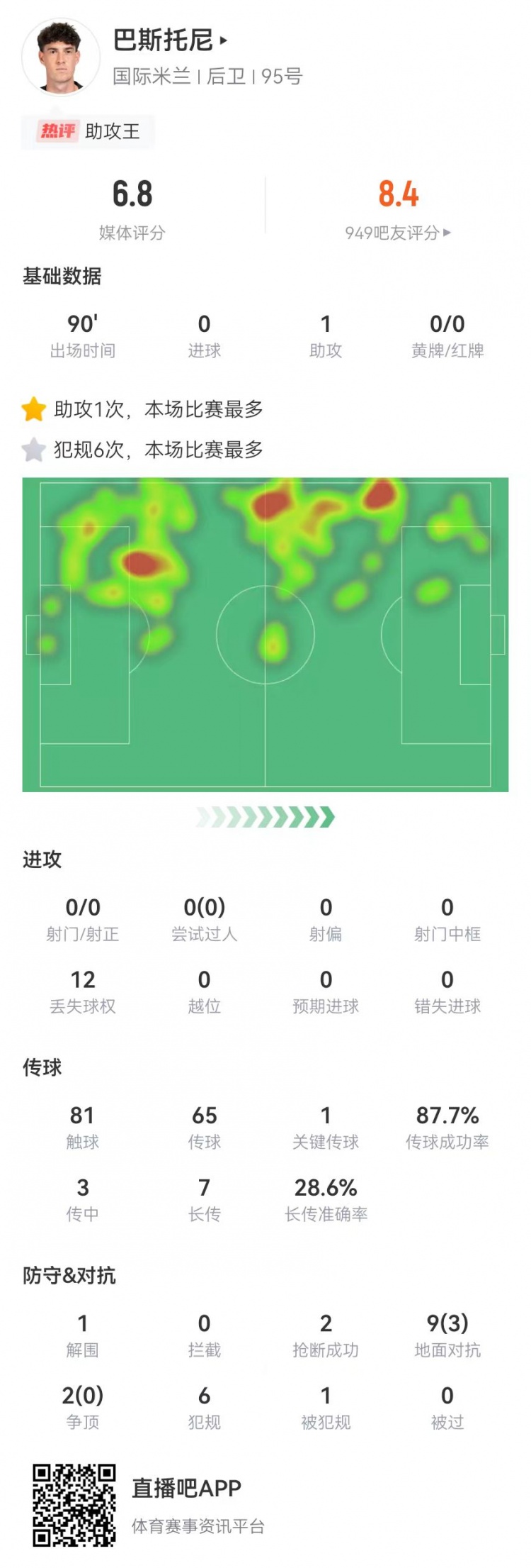 Inter Milan đã đánh bại Clazio 2-0 ở vòng đấu này của Serie A. Số liệu thống kê của Bastoni trong trận đấu này như sau: